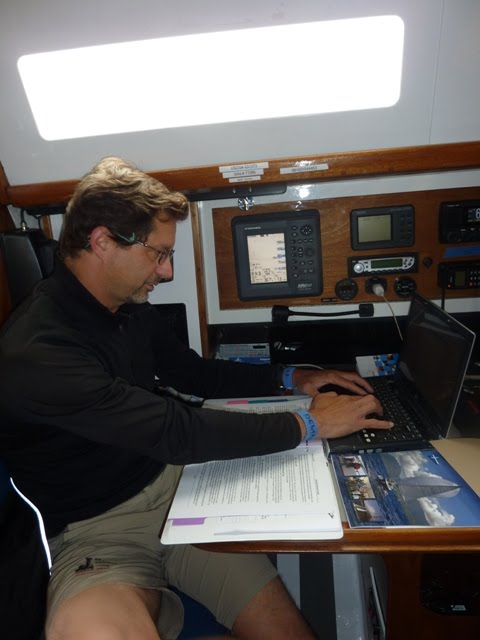 Barry getting comfortable in the nav station, playing Tetris. Just kidding. Actually working out our routing with Expedition, the most powerful navigation and flexible software package available for yacht racing… don’t leave port without it. (Good little plug for our sponsor, eh?)
