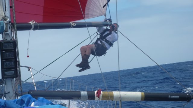 A little too comfortable trimming the kite (note to self: get bean bag!)