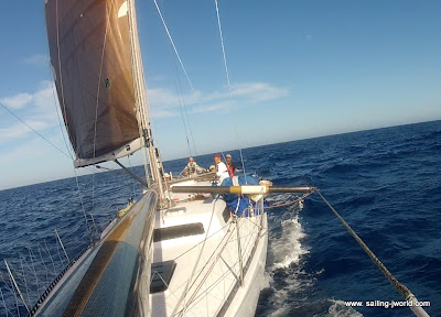 | Team J World aboard our Hula Girl charging the weather mark. |