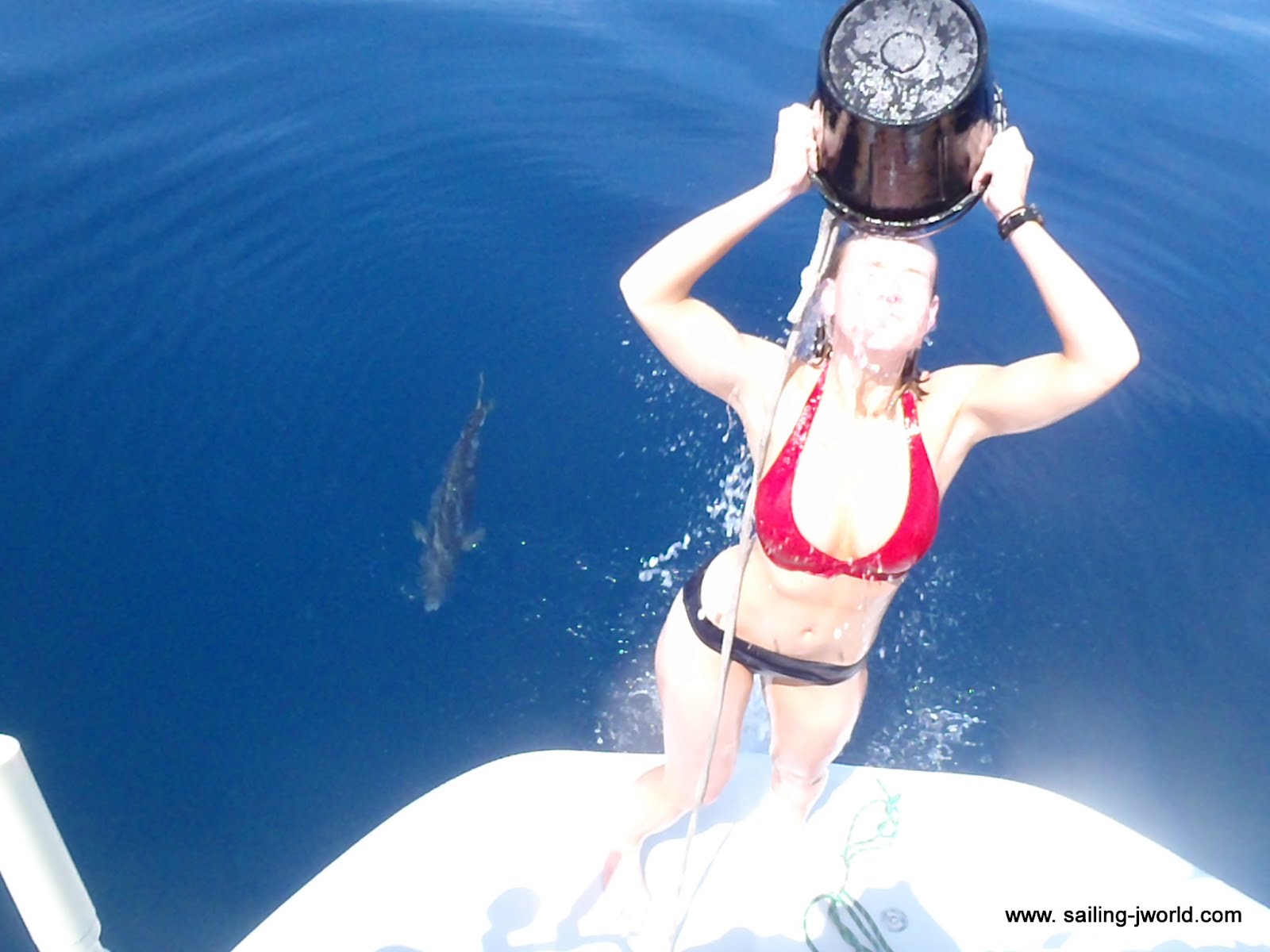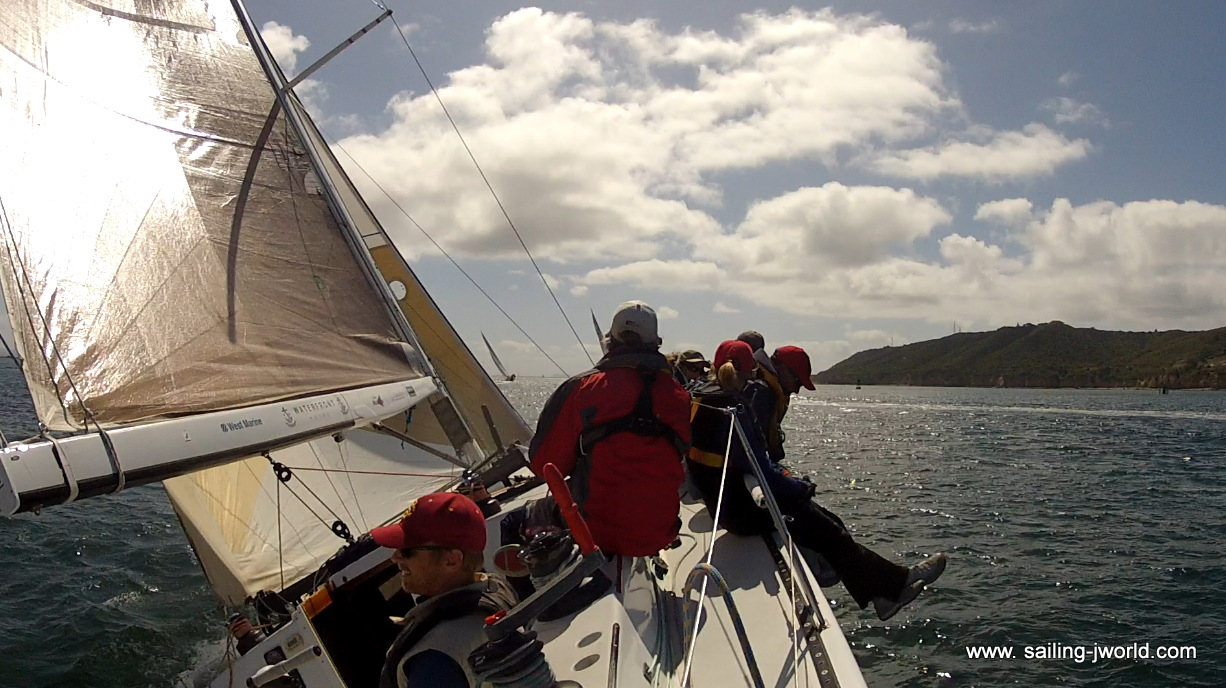 | Team J World aboard our Hula Girl charging the weather mark. |