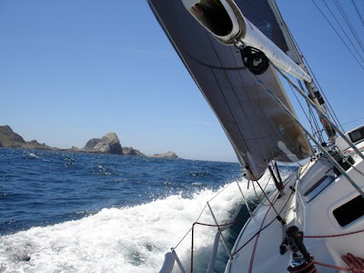 Well, most of our fleet has headed north for the Summer. World J/120 didn’t follow the whales this year, but was subjected to the indignity of a flatbed truck. Time constraints being what they are, we wanted to get the boat back in San Francisco to get ready for the Pacific Cup race to Hawaii and the cruising class from Hawaii to San Francisco this summer. Here is good ol’ J/World high and dry, beating to weather at about 100kph! By the way, to the student who left their red lifejacket in Puerto Vallarta, I think we found it. The trucker seems to have forgotten his red flag for the end of the mast!