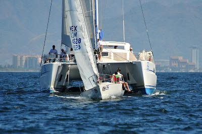 The picture above shows captian Eugenie making final preparations before hull #1 slides down the ways in San Pancho, Mexico.